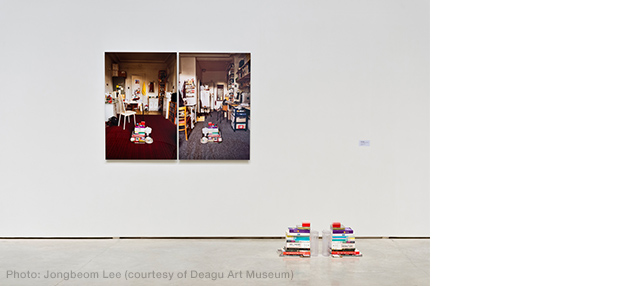 In the ongoing project “Things of Friendship,” I visit a friend’s house and with his or her permission look through the friend’s belongings in order to find items which we both own. I first photograph the items in the interior of my friend’s home, then the objects that I also own in my own home. In the exhibition space, the two photographs are juxtaposed on the wall alongside the two groups of items – one, which belongs to me, and the other, which belongs to my friend. After the show, the items are returned to their owners and put back in each of the homes. Instead of being fixed or categorized as commodities or art-objects, the two sets of identical items in this exhibition thus come to indicate “things of friendship” between my friends and myself.